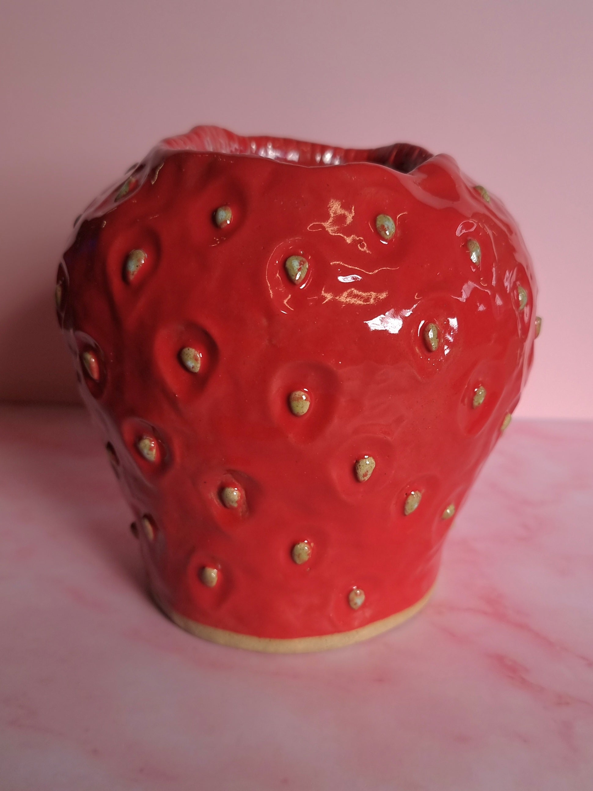 This strawberry vase is handcrafted with love and care, making each one unique. Show off your quirky side with this playful and charming addition to your home decor. Perfect for displaying your favourite flowers and bringing a touch of whimsy to any room. (Limited stock available!)